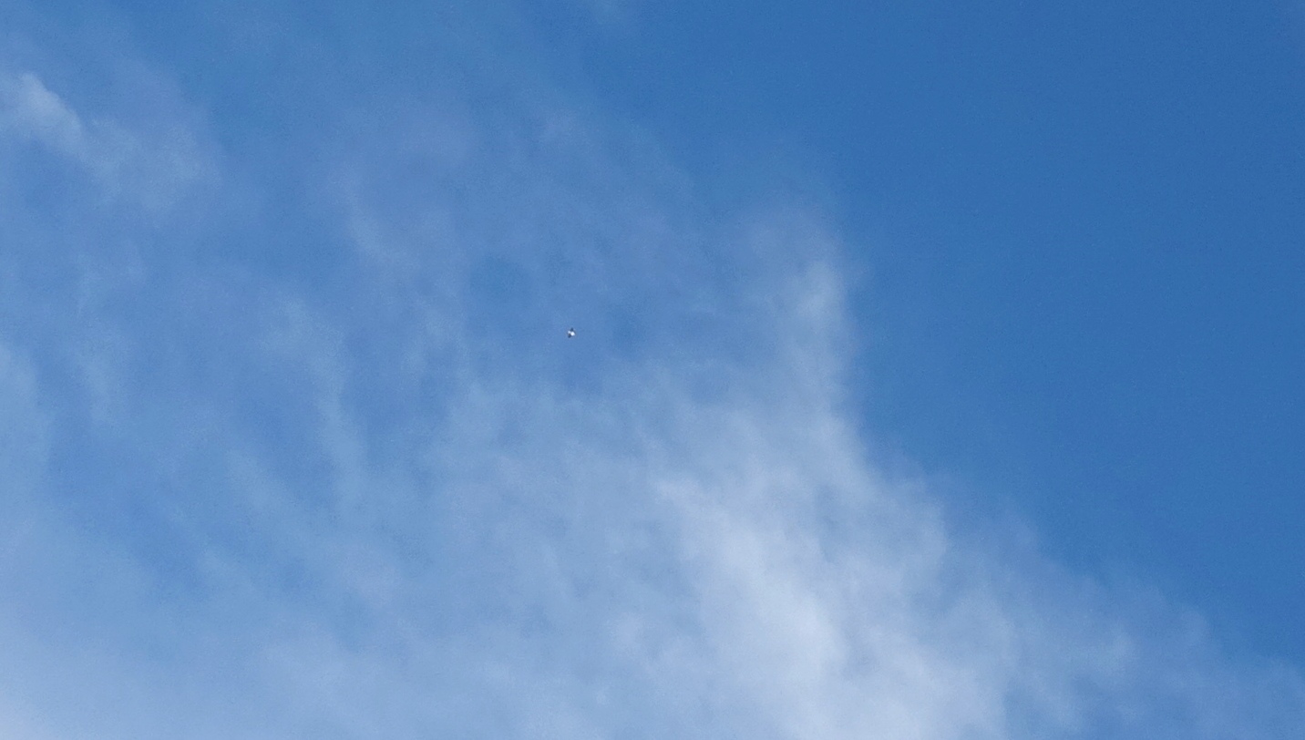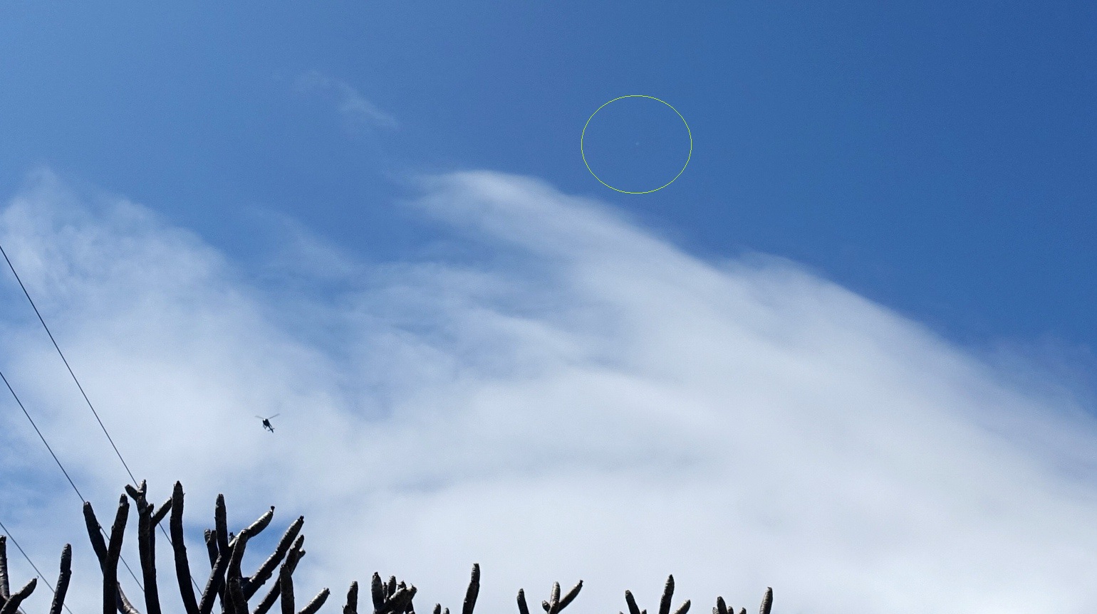 This was followed by a flurry of planes and helicopters, with this helicopter circling directly below where the ship had flashed, as the sky clouded over, with military jets sounding from above the cloud cover.