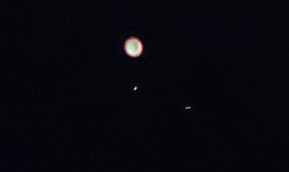 The Lei’hua then flashed three times at an angle to the Moon and Venus, as a bright golden light (circled below.), her domed disc form visible, with golden light flowing downward.