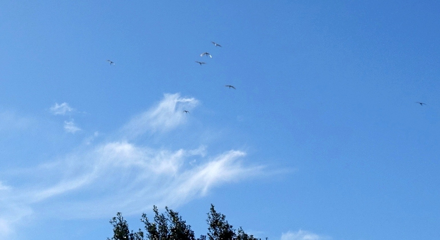 She then moved southward over the wetlands, signalling her position with a beautiful ‘cloud disc’ form, and as she dipped toward the treeline, an osprey eagle arrived and circled multiple times exactly above the disc, until it had disappeared.