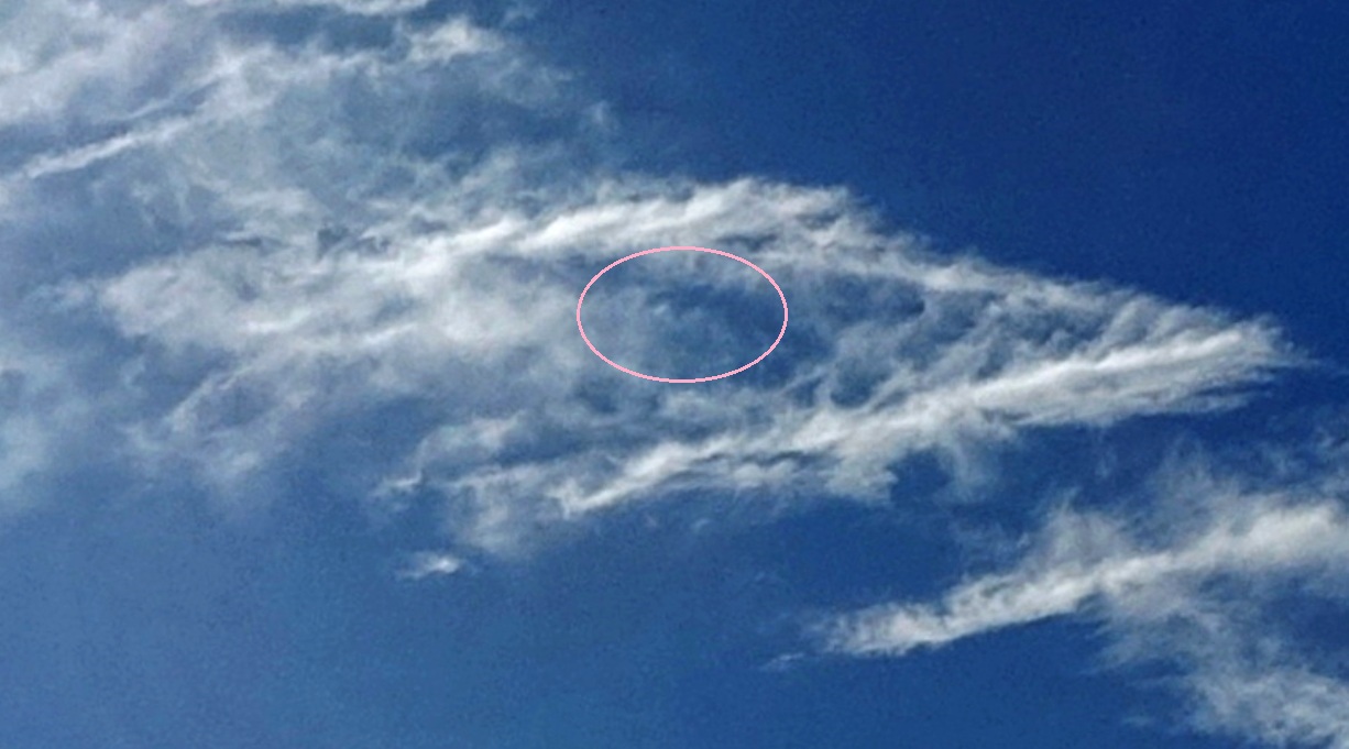This beautiful clear diamond shape formed in clouds on July 31st, around a central ‘eye’, and another lovely clear in the upper section of the diamond.