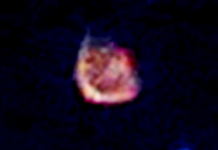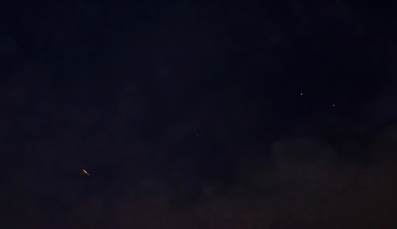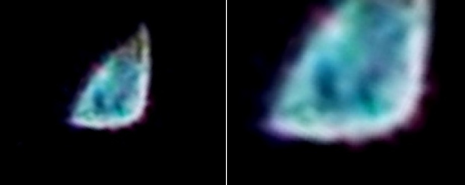 The two small twinkles from this ship were followed by a brilliant white flash, with a distinct form visible in the next photo.