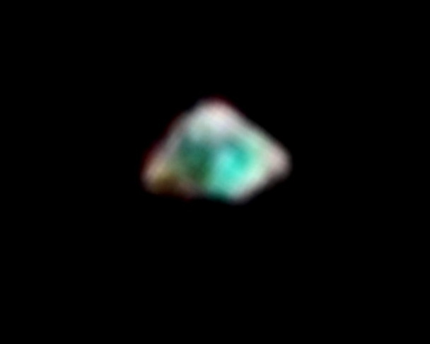 Two nights later on April 4th, a small orb appeared behind a plane in two frames, and inside the orb is a clearly outlined emerald green pyramid on a base of white light, positioned within a black tunnel; this is connected with a Star Family focus in which Ka’ree and Alione were involved, and the positioning of a higher dimensional crystalline pyramid in a location where some energies of a ‘planetary derailing’ nature were building, now defused, and symbolized in this orb. Alpha Centauri is visible in the upper right of the frame.