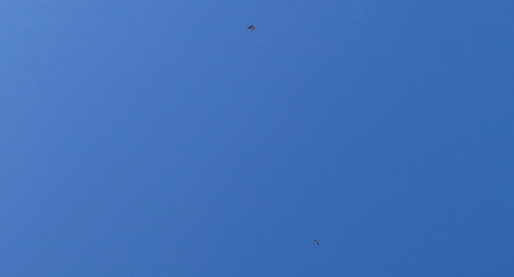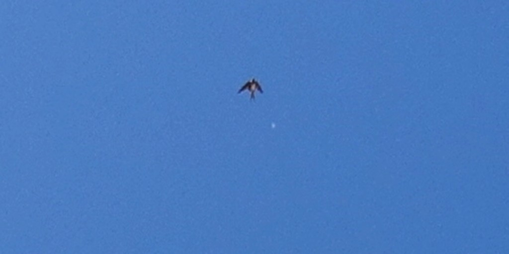 March 11th began with a daylight sighting, firstly of a tiny glowing white sphere which I’ve seen occasionally above my home at times when closely-connected lightships are ‘away’, that function as 5D monitoring extensions of the lightships keeping a watch over this area. These two photos show how small they are, as a swallow flew into the first frame, then the tiny monitor came alongside with the little bird, deliberately showing its scale.