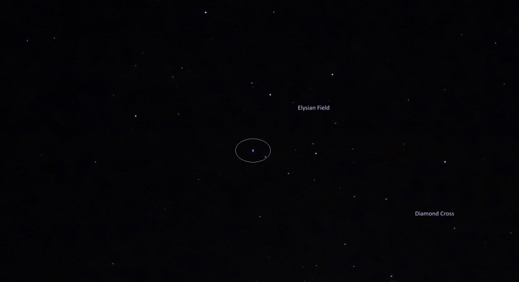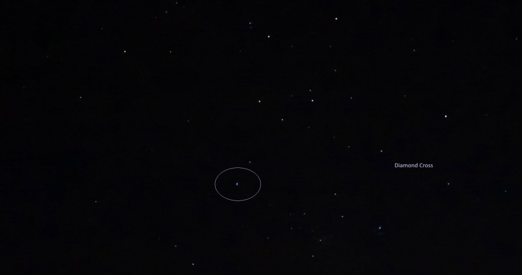 A sister ship of the same iridescent blue followed closely behind the Amrita, downward across the sky past the ‘three crosses’ (False Cross/Elysian Cross, Diamond Cross and Southern Cross).