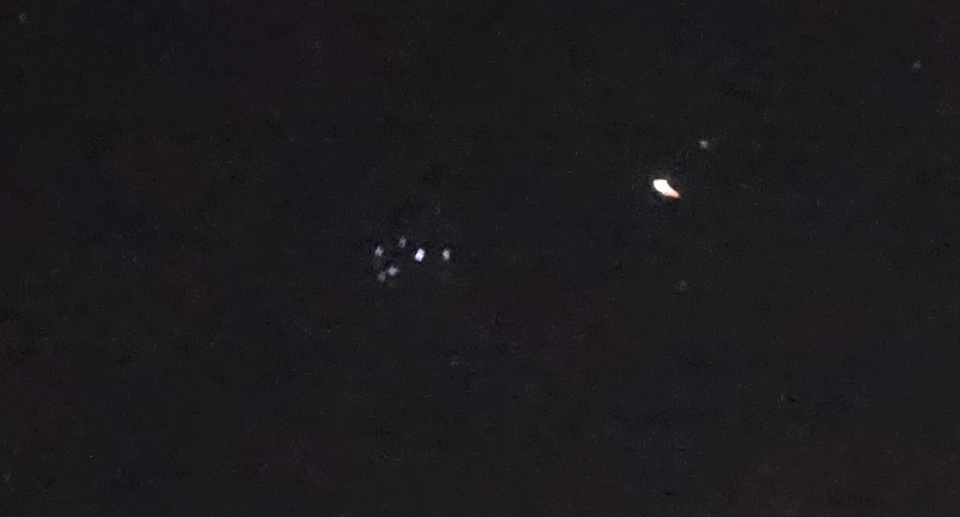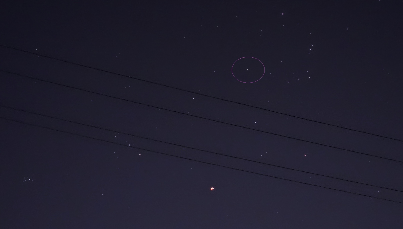 There was a lot of Star Family focus around the star Bellatrix in Orion that night (and ongoing), defusing and clearing some shadowy influences connected with that star, and just before the Lei’hua decloaked, a plane flew straight down the alignment of Sirius ~ Bellatrix ~ Aldebaran ~ Pleiades. Here it is passing the Pleiades.
