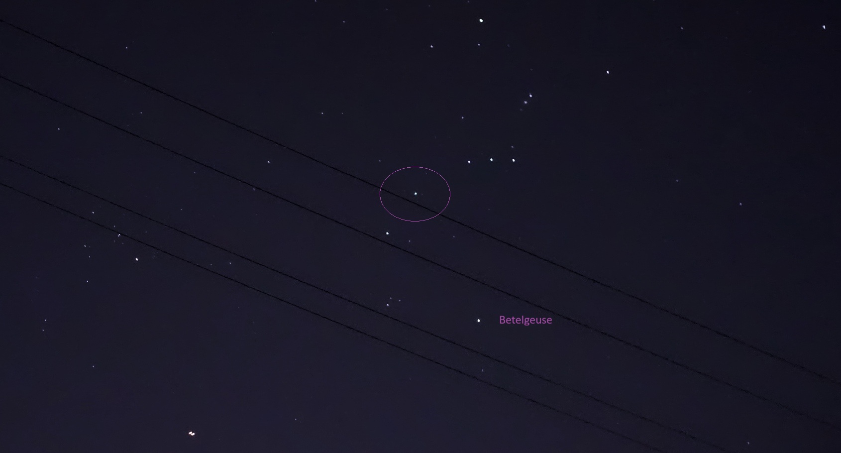 On January 13th, the Lei’hua appeared close to the star Rigel in Orion, just as a plane flew in front of the Orion constellation, with a grey ship also appearing/flushed out directly below the Lei’hua. The Lei’hua wrapped the grey ship in violet light, which is slightly visible in the photo below, then in subsequent photos of the Lei’hua you can see a deep violet/purple halo around her as Arnap&Rowena and those on board transmuted/transformed the grey energies.