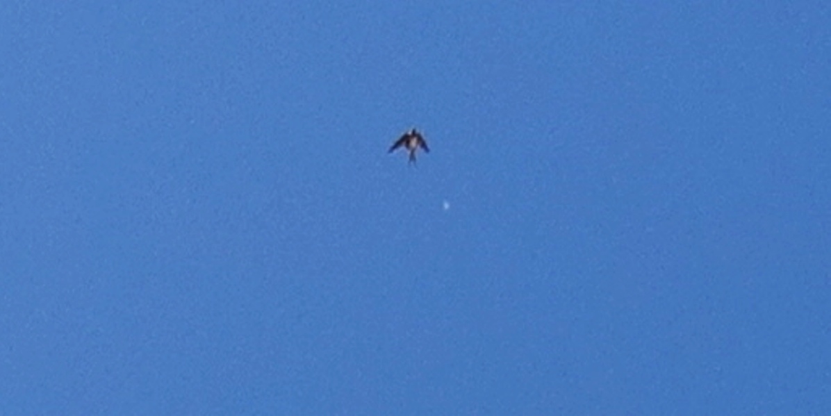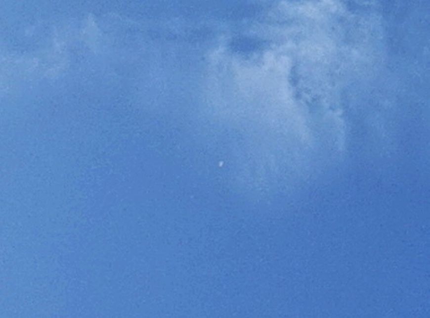 March 11th began with a daylight sighting, firstly of a tiny glowing white sphere which I’ve seen occasionally above my home at times when closely-connected lightships are ‘away’, that function as 5D monitoring extensions of the lightships keeping a watch over this area. These two photos show how small they are, as a swallow flew into the first frame, then the tiny monitor came alongside with the little bird, deliberately showing its scale.