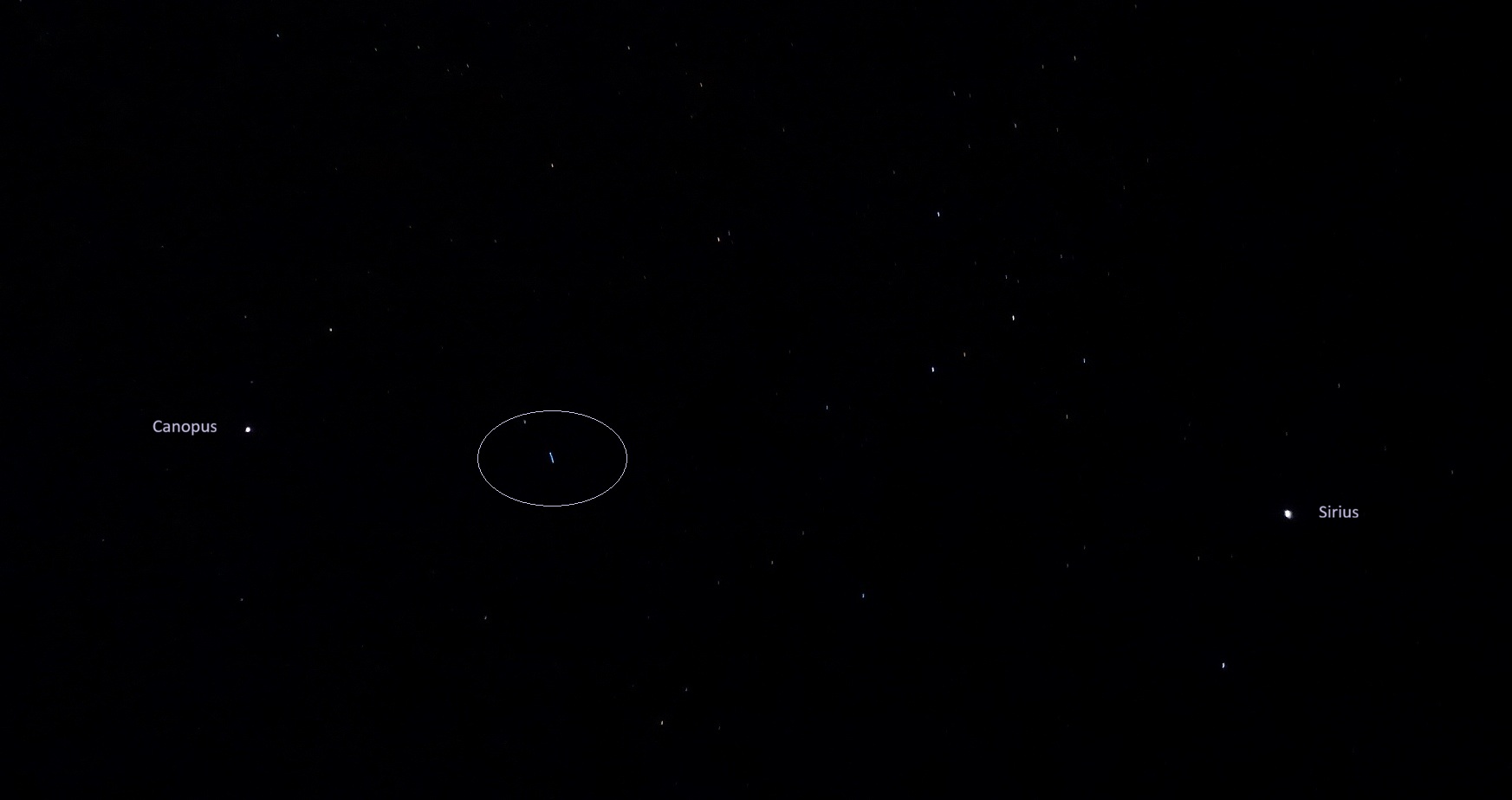 Here are a couple of short videos of the Lei’hua from later that night, when she reappeared near Canopus and flew to Sirius, recloaking just as she neared the brightest star in the sky.