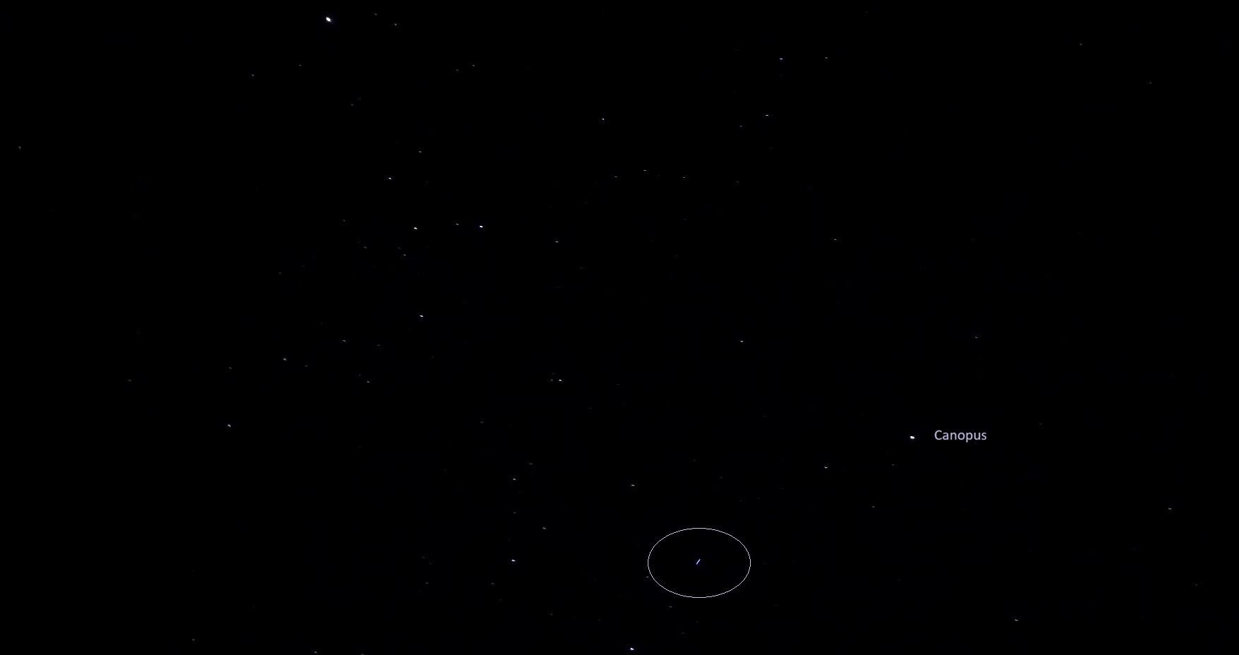A third ship then flashed below the star Canopus, and flew into the asterism known as the False Cross, which we call the Elysian Cross (see this post). In the crop below, a light emanation is radiating from the ship, of a rounded green hill with a doorway/portal leading into it, and a monolith on the right side of the hill, symbolism connected with an Agarthan realm.