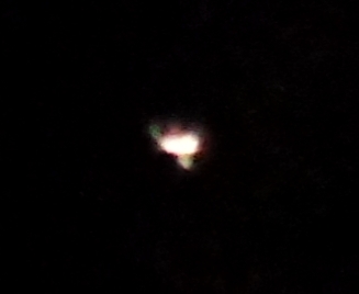And finally, the Terebinth, as she appeared with beautiful clarity as a red and green brightly lit triangular form in two frames on January 18th 2016, sending out a brilliant pulse of white light from her underside in the second photo, while directly overhead.