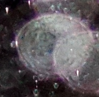 Neptune also connects with all the ‘oceanic moons’ in the Solar System, such as Jupiter’s moon Europa, and Saturn’s moon Enceladus, both with oceans under outer layers of ice like Triton (even the Earth’s moon has been recently revealed to have water on its surface). In the photo below, from October 13th, a shimmery green-gold orb and a Neptunian ship appeared flanking Jupiter & Saturn to either side, in a long diamond formation. Green-gold orbs have appeared to me occasionally before, with messages about/from Enceladus…but this one is directly showing how our aquatic star friends across the Solar System flow and network together. In the enlargements below, there’s one especially clear being in the orb, with a dark green, round face, with antennae, looking as if it’s in a swirling green-gold bubblebath. This being looks a lot like Donny&Dora from Triton (see previous post), and is in fact described to me as their baby, Domo (I’ve had a little cuddle, up on the ships, and he’s beyond adorable). π