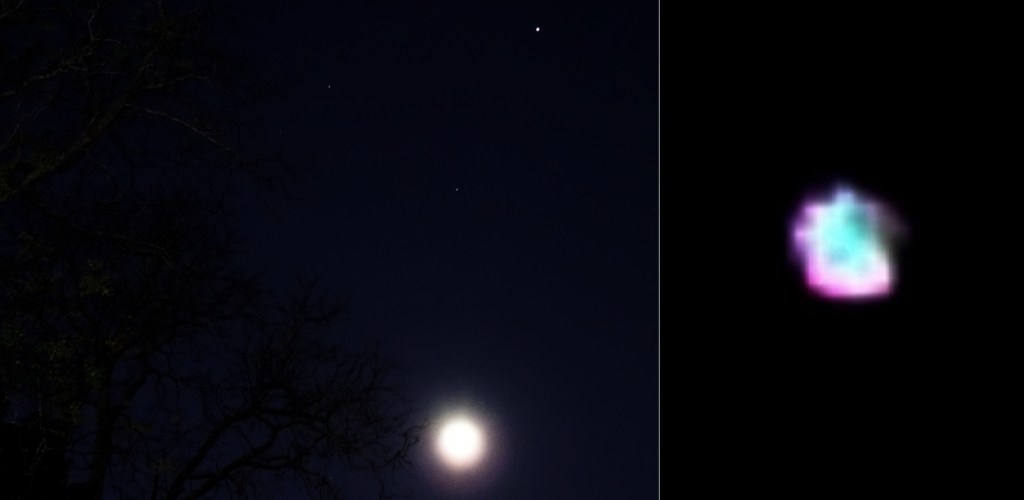 Stellar bunny connections flowed through the December 2020 Solstice, with guidance to focus with the gorgeous nebula below (the Spirograph Nebula), in the Lepus constellation, overlaid on the ‘Cosmic Egg’ for New Age of Gaia birth energies coming through the Great Conjunction. To the left of Jupiter&Saturn’s conjunction, among a pair of flashing lightships, the orb/ship below revealed the Lepus/Rabbit energies present and assisting the light in-flow…with a ‘purple bunny’ beautifully clear.