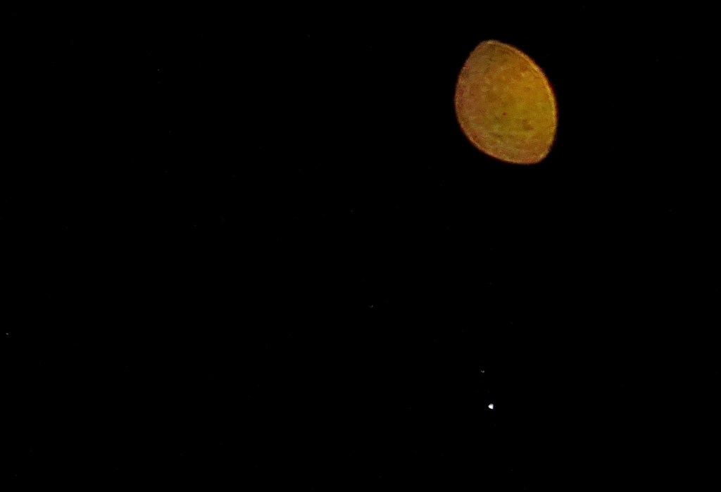 Massive orb expands from Venus toward the Moon during their conjunction, April 26th 2020.