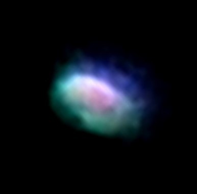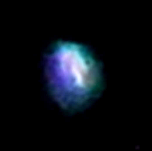 In the enlargement, two distinct soul group vibrations can be seen coming through this orb, melded together in unity, with a face in purple-blue light on the left, showing leonine-humanoid features, and the face on the right in royal blue and light blue, with cow horns. πŸ™‚