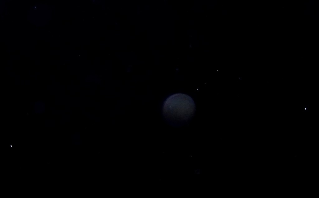 In the next photo, a huge orb expanded from Venus as her light became rose-white hued, toward the Moon. The focused beam of Soul light from Venus to the Moon, and into the sublunar Earth field and light-grids, was so strong in that moment! With the orb turned around and contrast increased, the Soul of Venus can be seen in her Divine Feminine form, with green light all around her, like the green heart chakra light washing over Mars in the photo above. In this Venus orb, however, deep rose light of many variations from carmine through to violet-plum colours is radiating outward from her form in the centre of the Venus orb. Her head is crowned with a white crescent that extends into long ‘cow horns’, symbolizing her soul connection to Taurus, and how she is receiving, anchoring and radiating the ascended Taurean energies of stability, beauty and peaceful harmony (Aldebaran, the Hyades and Pleiades cluster are all within the Taurus constellation) to the Earth, via her overlighting, guiding soul connection to Gaia.