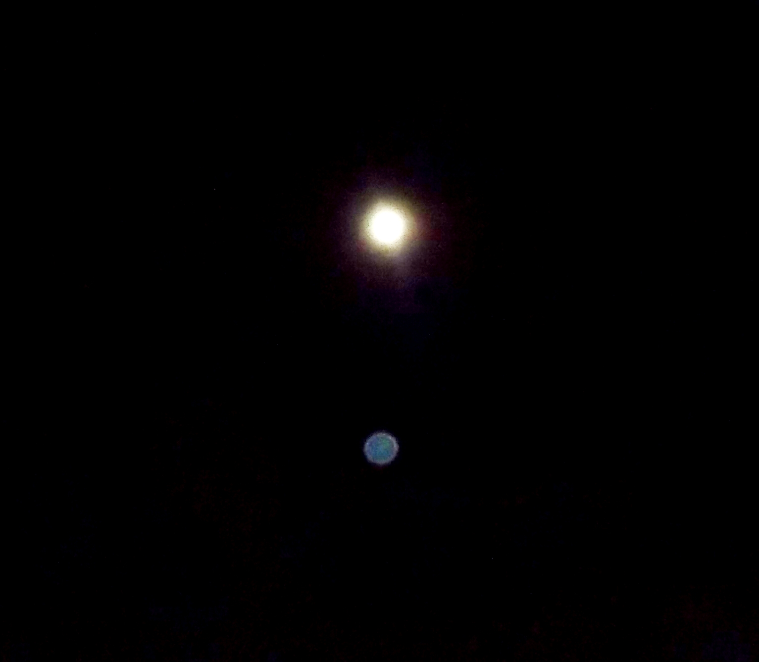 As various lightships came into position, stationing around Betelgeuse, there was a bright pink-red flash (independently witnessed that night by dear friend, Shelley Hartland, from her home nearby, which she described as a cherry red-pink colour light) moving between Betelgeuse and Meissa, stunningly reflected in the cherry orb below.