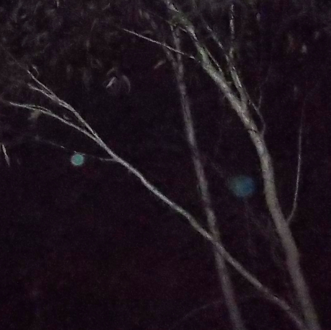 Several more of these tiny blue-purple light flashes appeared that night, each one a symbolic ‘window’ into a lightship, showing blue humanlike beings seated around a small table (on the left, with a white object on the table their attention is focused upon) and on the right, standing, with their faces and upper bodies visible.