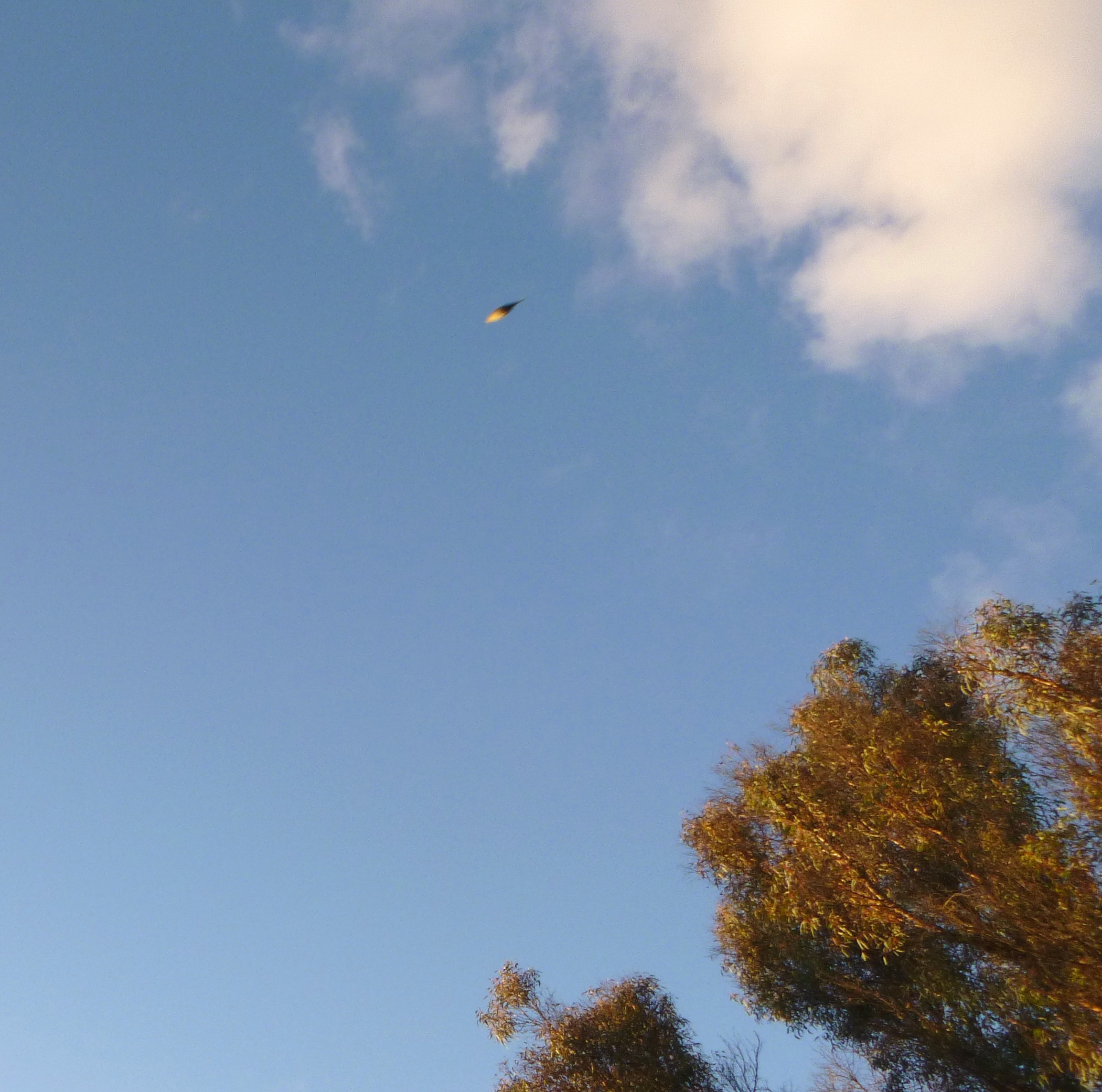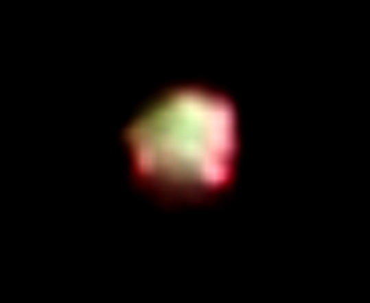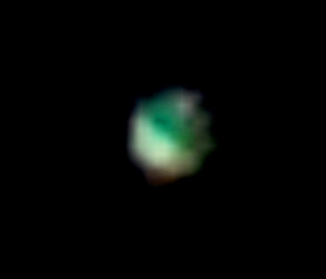 He then decloaked the Lei’hua in her golden-white diamond light, and crossed over the sky to the south, where the ship shone brightly for a few seconds. In the enlargement below, you can see the interior light of her centre, with a rosy tint wrapped around, and green light radiating from the ship’s central Core Crystal (Arnap is also standing there, in the centre of the ship, in his green suit).