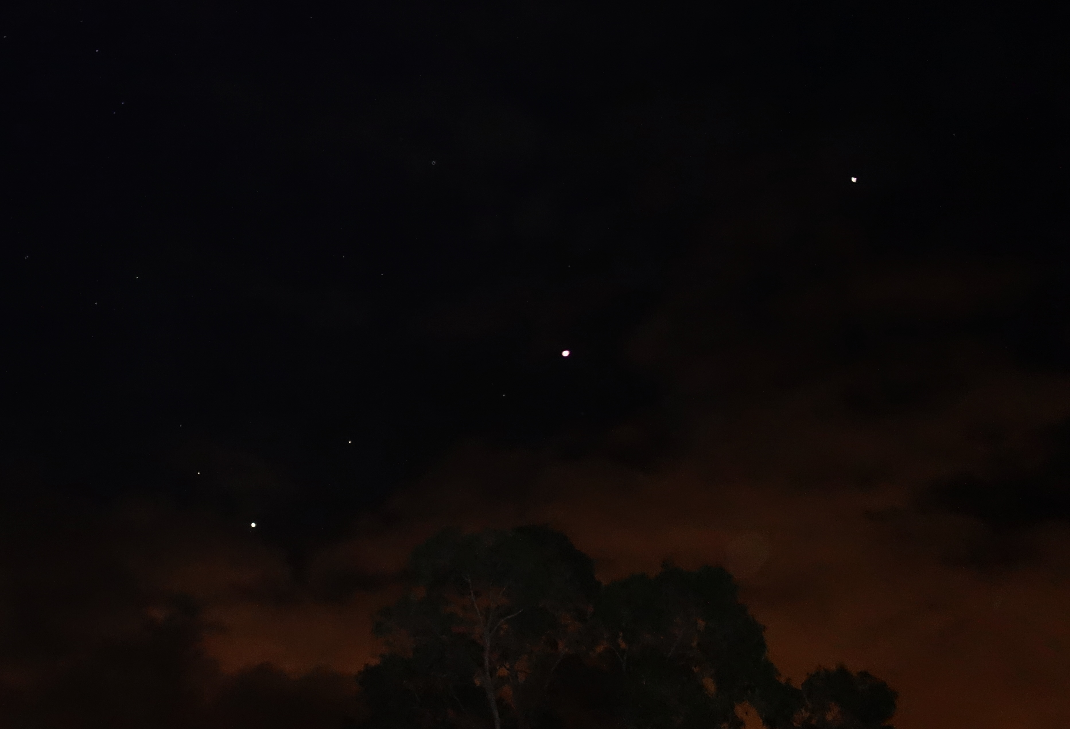 Massive orb expands from Venus toward the Moon during their conjunction, April 26th 2020.