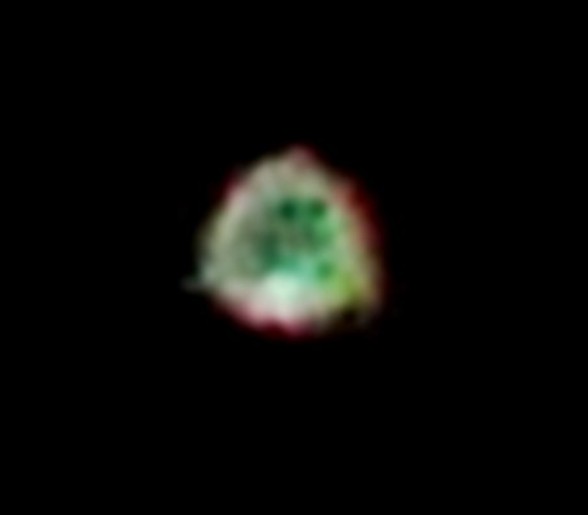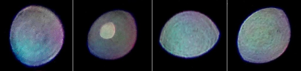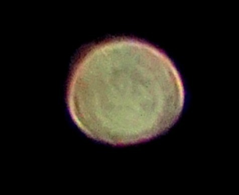 In the next photo, a huge orb expanded from Venus as her light became rose-white hued, toward the Moon. The focused beam of Soul light from Venus to the Moon, and into the sublunar Earth field and light-grids, was so strong in that moment! With the orb turned around and contrast increased, the Soul of Venus can be seen in her Divine Feminine form, with green light all around her, like the green heart chakra light washing over Mars in the photo above. In this Venus orb, however, deep rose light of many variations from carmine through to violet-plum colours is radiating outward from her form in the centre of the Venus orb. Her head is crowned with a white crescent that extends into long ‘cow horns’, symbolizing her soul connection to Taurus, and how she is receiving, anchoring and radiating the ascended Taurean energies of stability, beauty and peaceful harmony (Aldebaran, the Hyades and Pleiades cluster are all within the Taurus constellation) to the Earth, via her overlighting, guiding soul connection to Gaia.