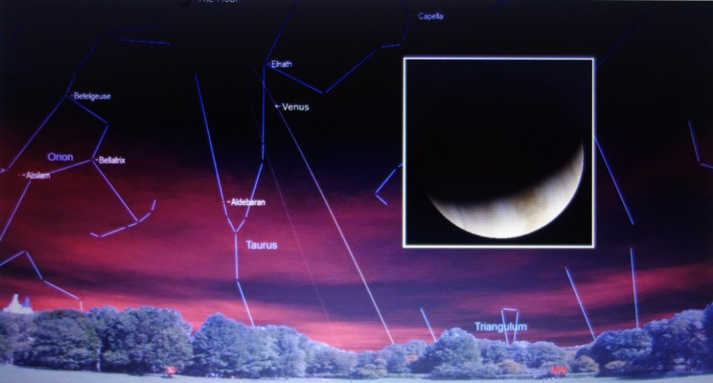 In the April Update, we mentioned how the Lyrids, in their higher dimensional aspect, transmitted a subtle ‘stream’ of universal light codes, which translate through the mirror numbers 27-72 into this galaxy, as they brushed by the Earth’s atmosphere at 27 miles per second. And how this led into a galactic central code activation through Venus to Earth, with Venus at her brightest this year on April 27th 2020, with exactly 27% of her disc illuminated. This particular ‘in-flow’ of Venusian ascended vibrations came into heightened focus through the Venus~Moon conjunction on April 26th, and you can see in the photo below that Venus and the Moon were also in straight alignment to the red star Aldebaran, alpha star of Taurus, that night.
