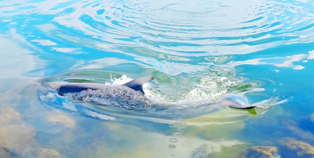 The dolphin in the photo below arrived with an open wound on the right side of his dorsal fin. He then underwent a ‘miraculous’ healing-in-the-now-moment, and this image which he formed in front of his dorsal fin holds the imprint of soul-directed energetic realignment and repair, that can reverberate instantly and deeply through the emotional, mental, etheric, astral and physical body layers, with the vibration of grace, restoration and infinite well-being.