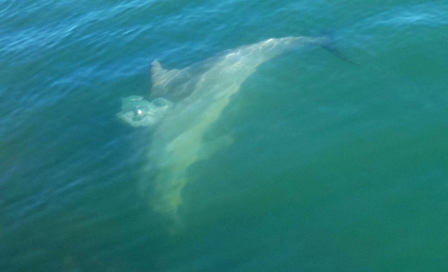 The dolphin in the photo below arrived with an open wound on the right side of his dorsal fin. He then underwent a ‘miraculous’ healing-in-the-now-moment, and this image which he formed in front of his dorsal fin holds the imprint of soul-directed energetic realignment and repair, that can reverberate instantly and deeply through the emotional, mental, etheric, astral and physical body layers, with the vibration of grace, restoration and infinite well-being.